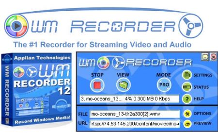 WM Recorder - программа позволяет с легкостью записывать потоковое видео и звук, транслируемое через интернет или локальную сеть. Потоковые данные перехватываются и записываются в файл, который впоследствии может быть воспроизведен любым медиа проигрывателем. Для записи мультимедийного потока в файл необходимо запустить программу и включить режим записи непосредственно перед нажатием ссылки на web-странице, по которой начинается воспроизведение мультимедиа. Предусмотрен также режим работы с URL-адресом, что актуально, например, при прослушивании интернет-радио, где у потока фактически отсутствует конец. Хотя настройки программы и не богаты, ими не стоит пренебрегать, например, если вы не п